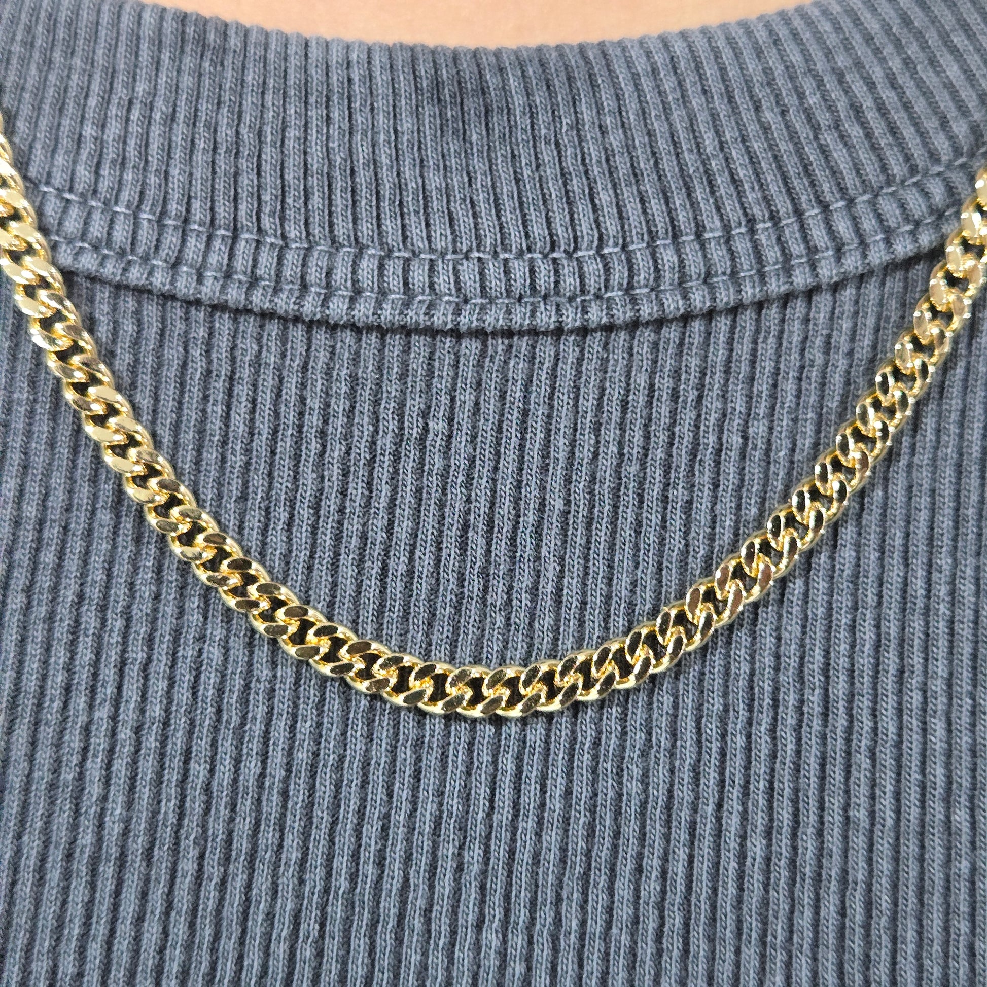 Classic Design: Features the iconic Miami Cuban link pattern, known for its interlocking, slightly flattened links that lay flat against the skin.