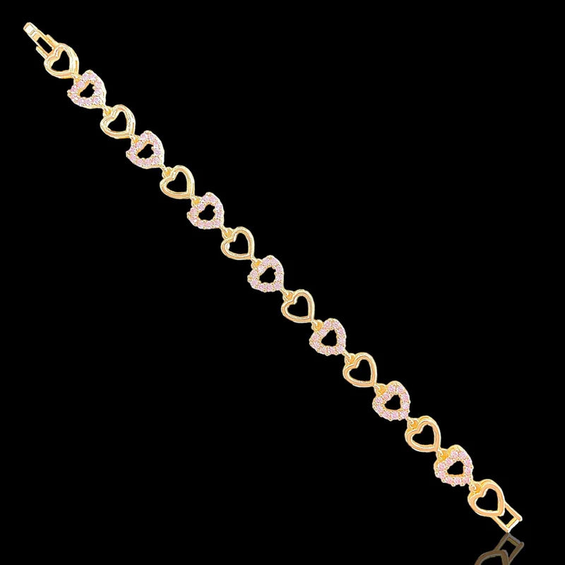 Elevate your style with the exquisite 18k Gold-Filled CZ Eternal Heart Bracelet, a timeless piece designed to add a touch of romance and sophistication to any ensemble. This charming bracelet features a continuous chain of beautifully crafted heart links, with alternating hearts adorned with dazzling Cubic Zirconia (CZ) stones that shimmer with every movement.