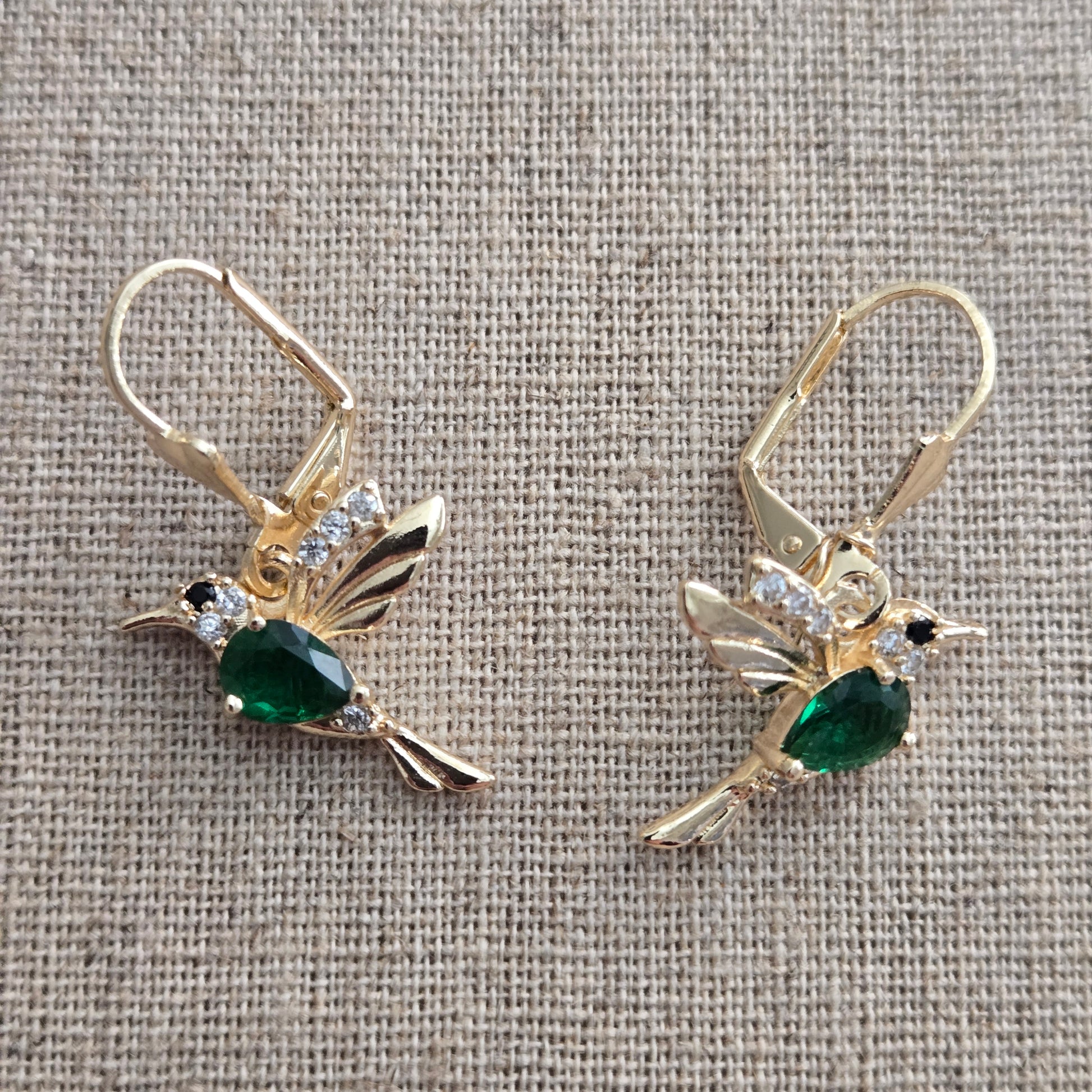 Elevate any jewelry collection with these exquisite 18k gold-filled hummingbird dangle earrings. These stunning pieces combine artistic design with premium materials, offering an elegant and long-lasting accessory. The intricate hummingbird design, accented with sparkling cubic zirconia (CZ) stones, makes a subtle yet glamorous statement perfect for any occasion.