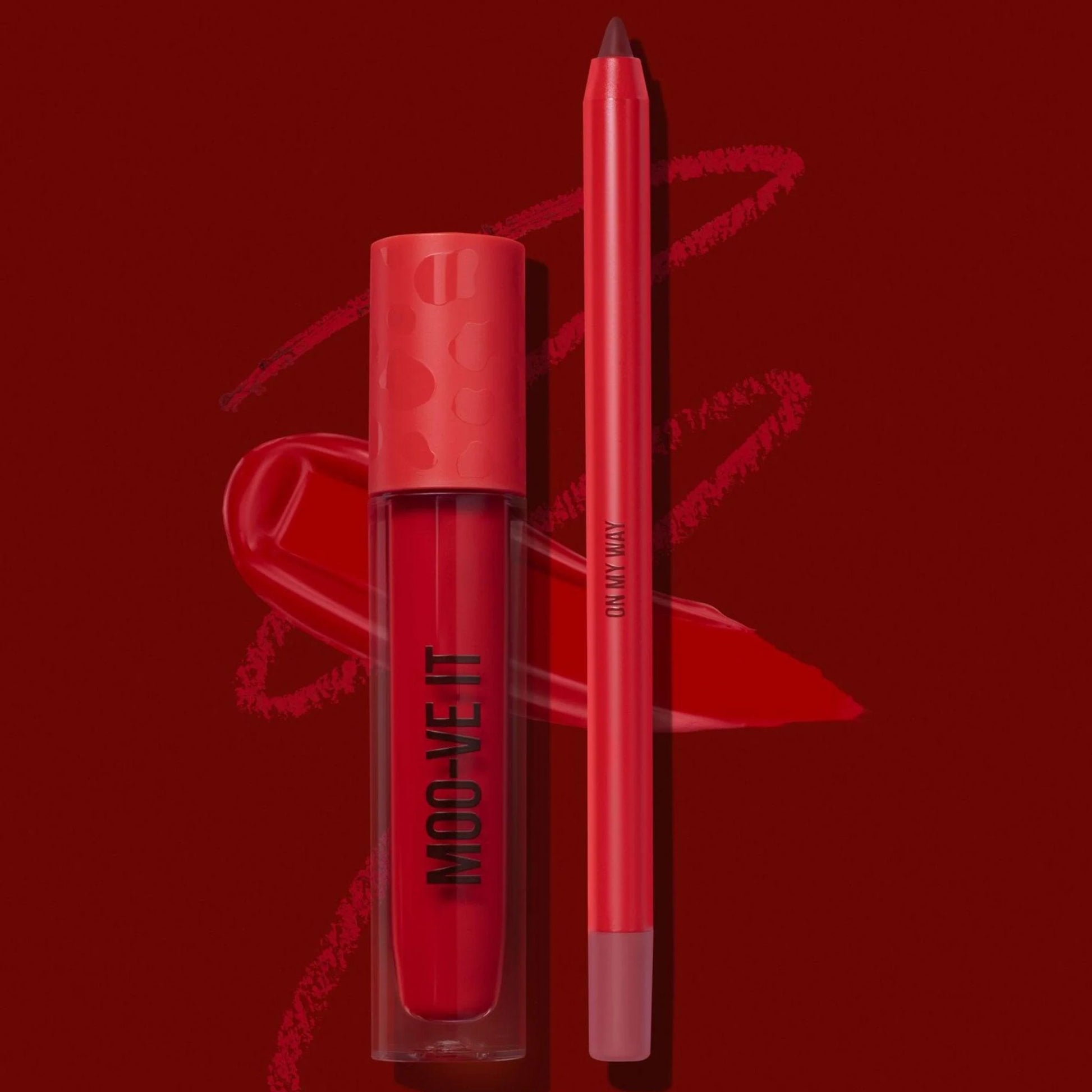 MOO-VE IT: No space for average babe! It’s time to step up and get going with Moo-ve It, a striking lip duo! Composed of a matching true red liquid matte lipstick and gel lip liner combo. This duo is a powerhouse of intense pigmentation, lightweight comfort, creamy perfection and fun! Featuring our first ever printed and textured packaging so you can not only wear but store in style too! Grab yours today and have everyone asking you what's your availabilippy?
